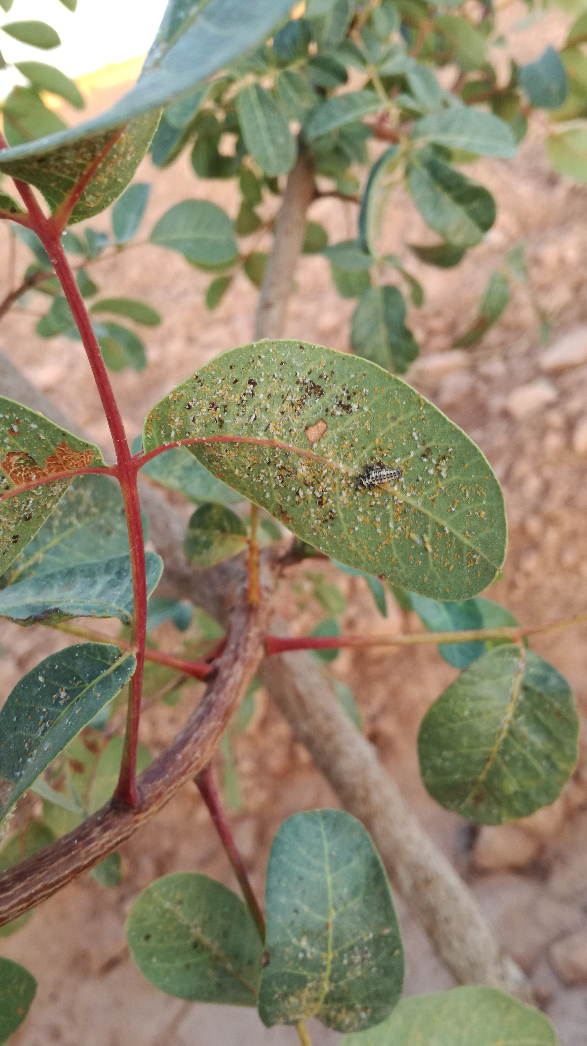 Estos días estoy notando algunos cambios en mis cornicabras, las hojas de algunas plantas están cubiertas de una especie de pulgon, y en el suelo aparece un polvo blanco.
